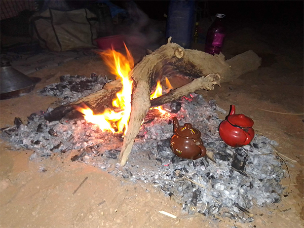 Encore un dernier thé en route, avant vos adieux à M’Hamid, en fin d’après-midi (après avoir parcouru les 16 derniers kilomètres). Que de moments exceptionnels, de paysages sublimes, de rencontres improbables, de belles leçons de vie…